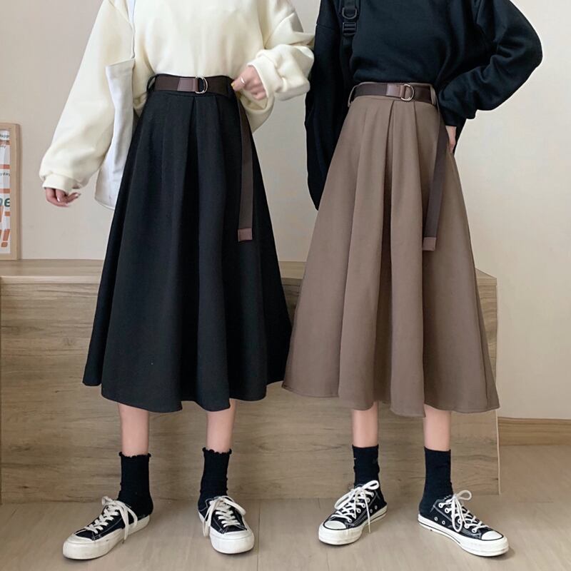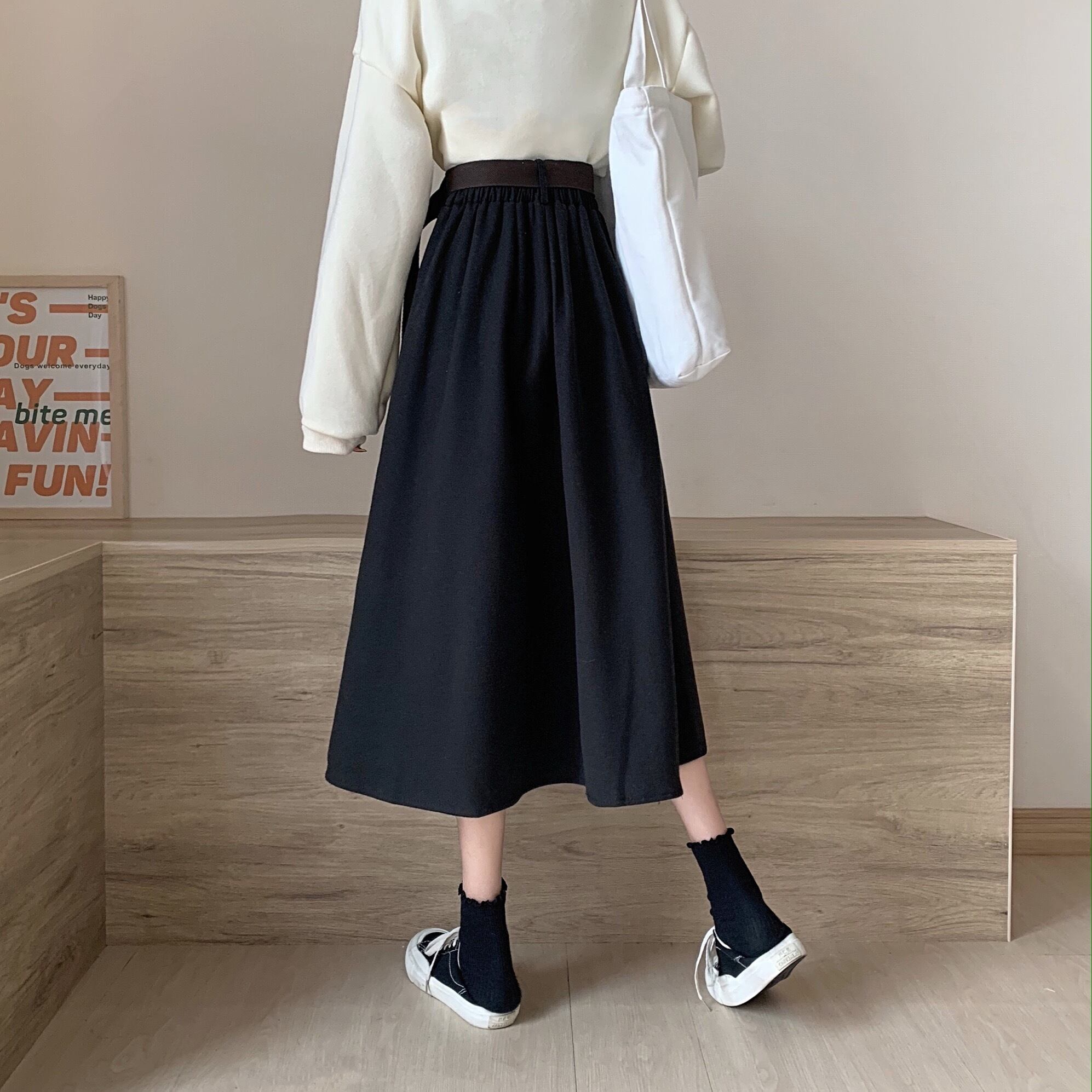 スカート スプリングオータムハイウェスト薄手Aライン 春物 秋物 試着室64189722252