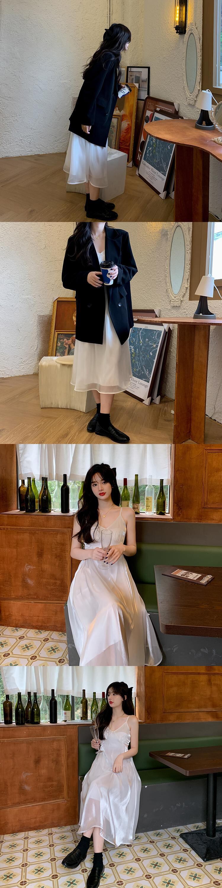 色:ブラックジャケットワンピース,カーキコートワンピース,白いスカートのワンピース,黒と白のシングルスカート