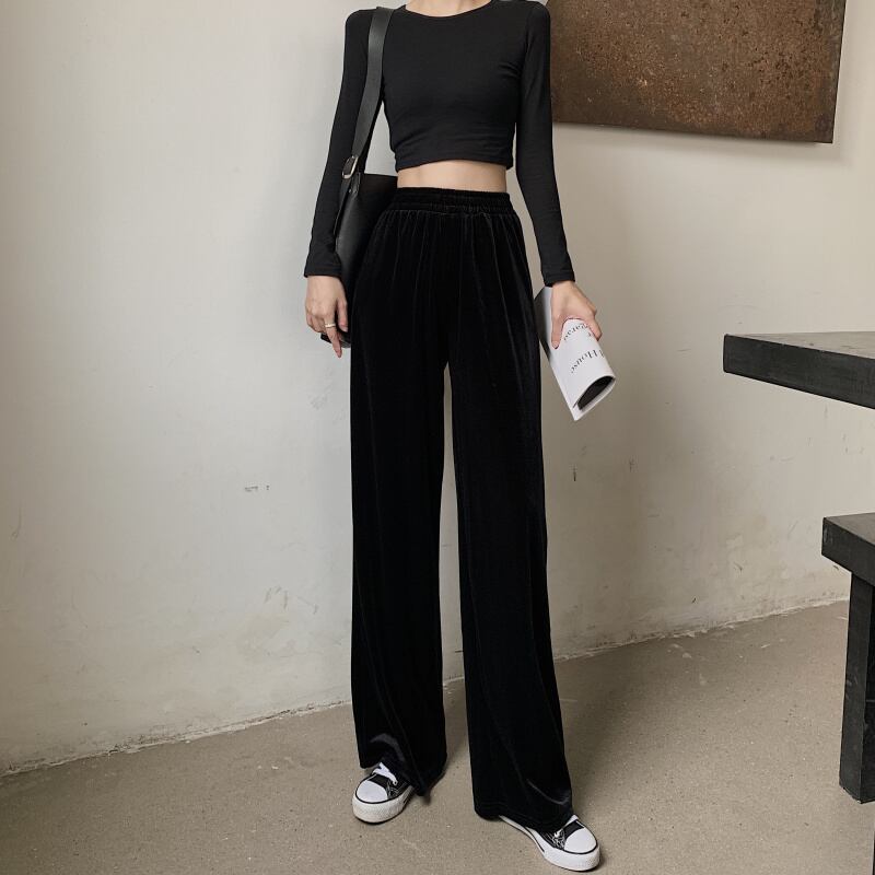 オータムウィンターパンツ ハイウェストウェストカジュアルルーズベルベットレディース 秋物 冬物 試着室90878671429