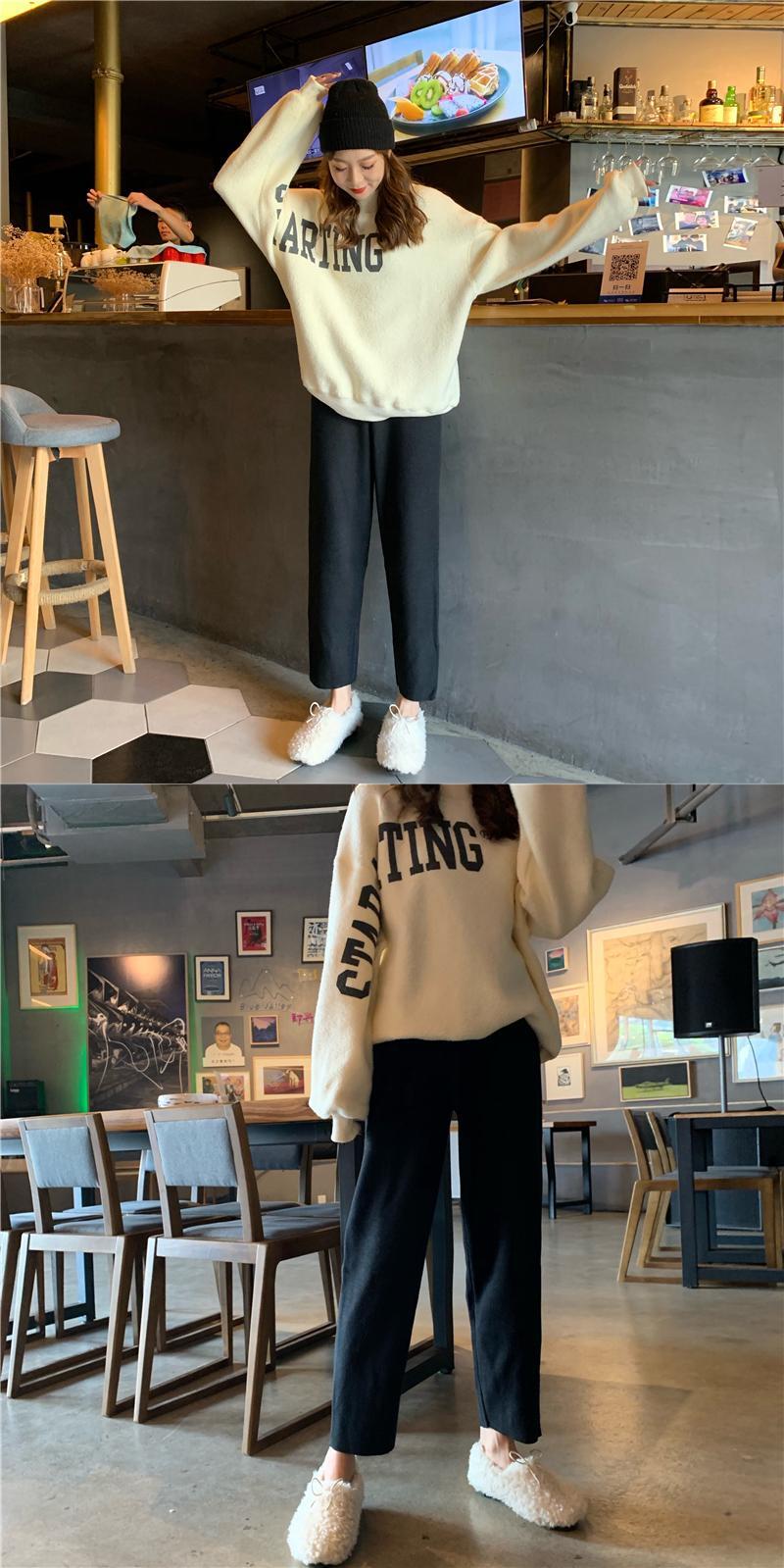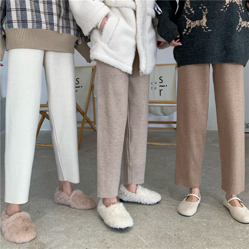 パンツ スプリングオータムハイウェストウェストスリムカジュアルレディースルーズホワイトニット 春物 秋物 試着室78647425676
