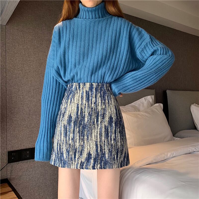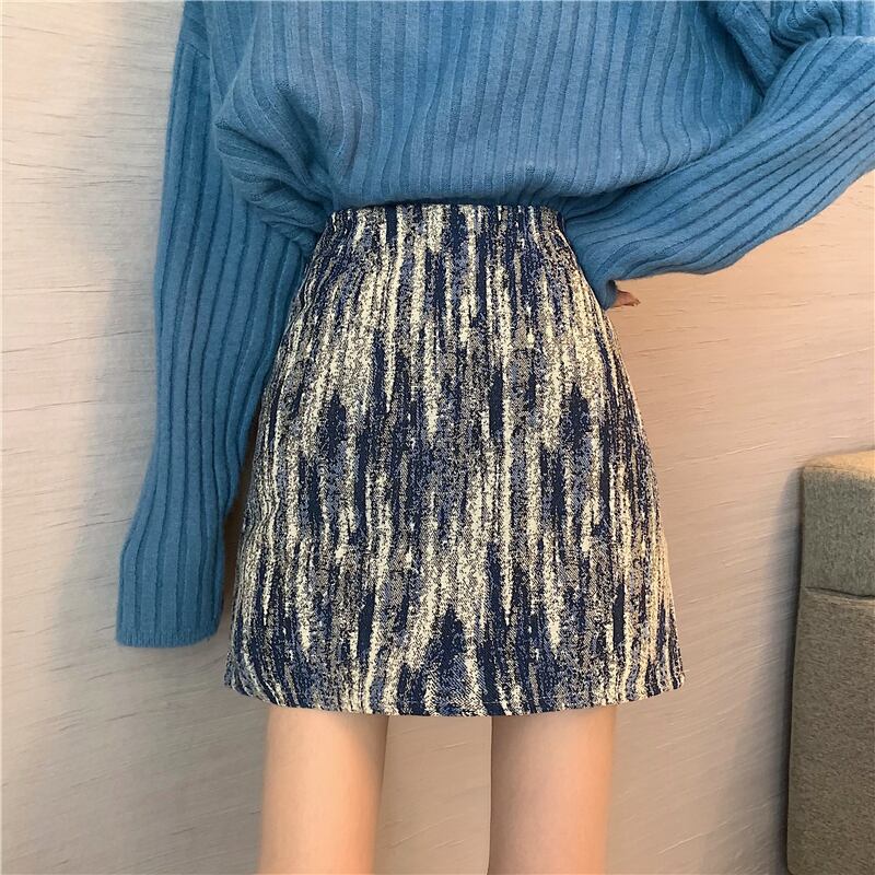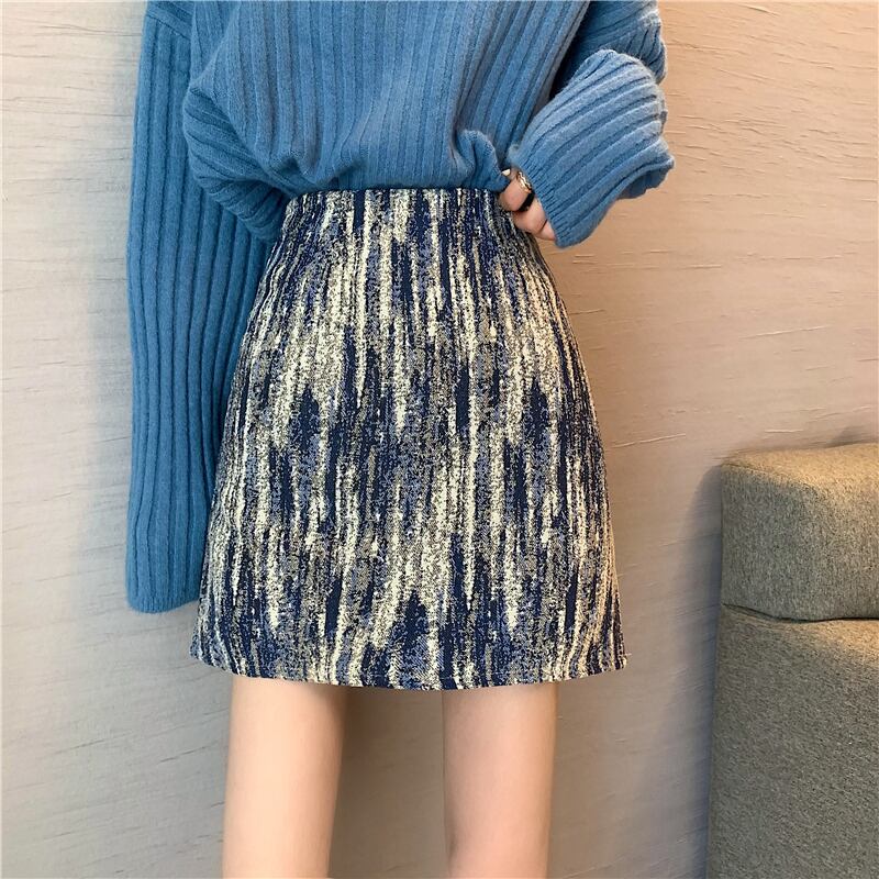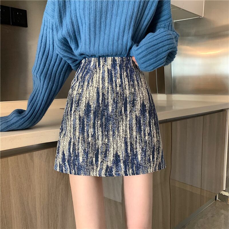 スカート ハイウェストウェストスプリングオータム薄手Aライン 春物 秋物 試着室75367164353