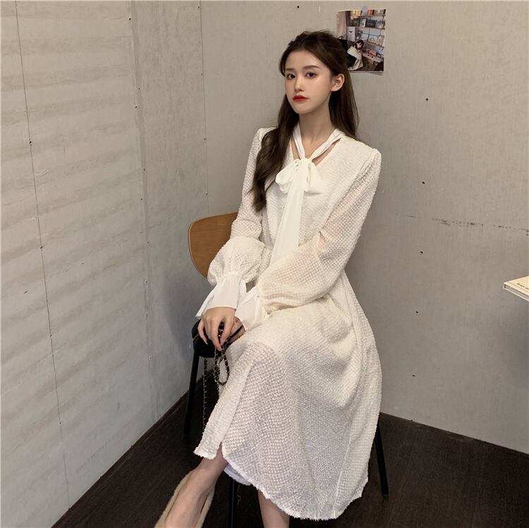 ドレス スプリングリボンVネックウェストAラインスカート 大人ガーリー スウィート キュート カジュアル 春物 試着室35329356389