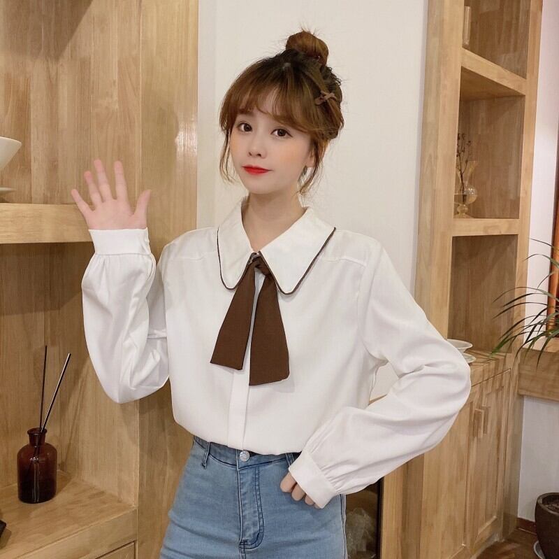 シャツ スプリングルーズトップス ロング リボン 春物 試着室20734368625
