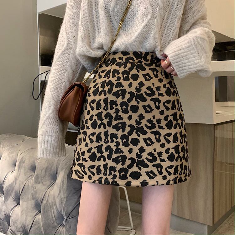 レオパードプリント柄スカート サマースタイルウェストAライン 夏物 試着室19524074186