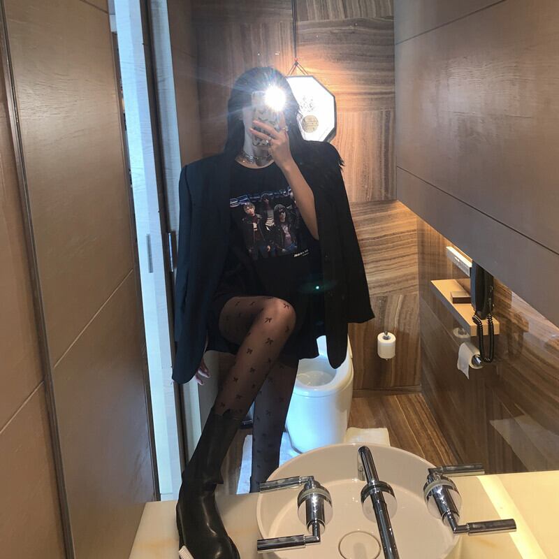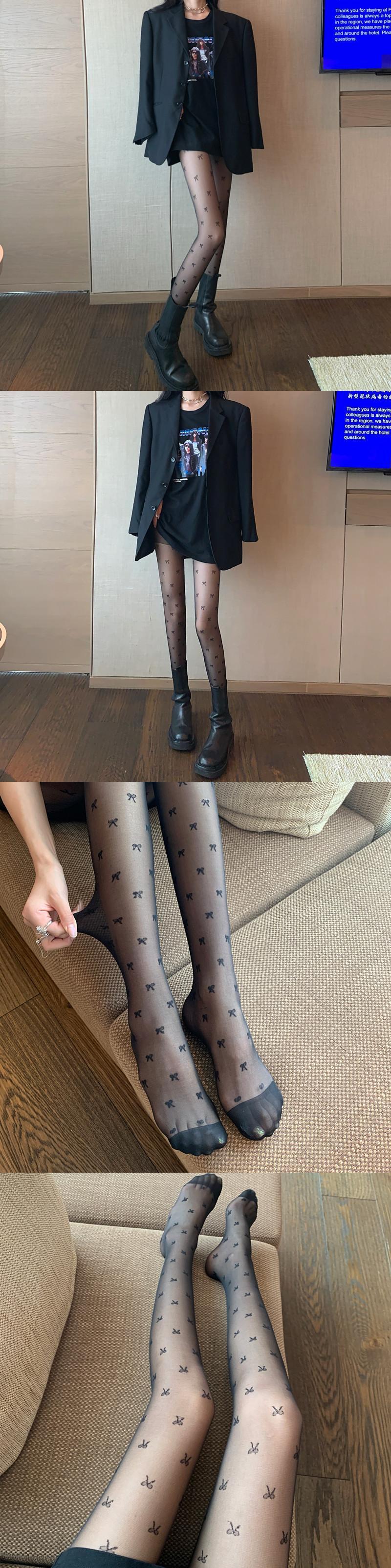 スプリングオータムレッドブラック薄手ストッキング レディースソックス 春物 秋物 タイツ 試着室93069560083
