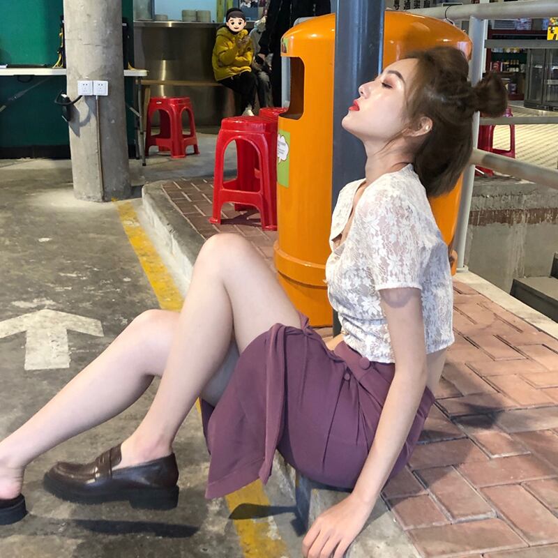 カラートップス サマースタイルショートレースシャツ レディース 夏物 スクウェア 試着室68208397932