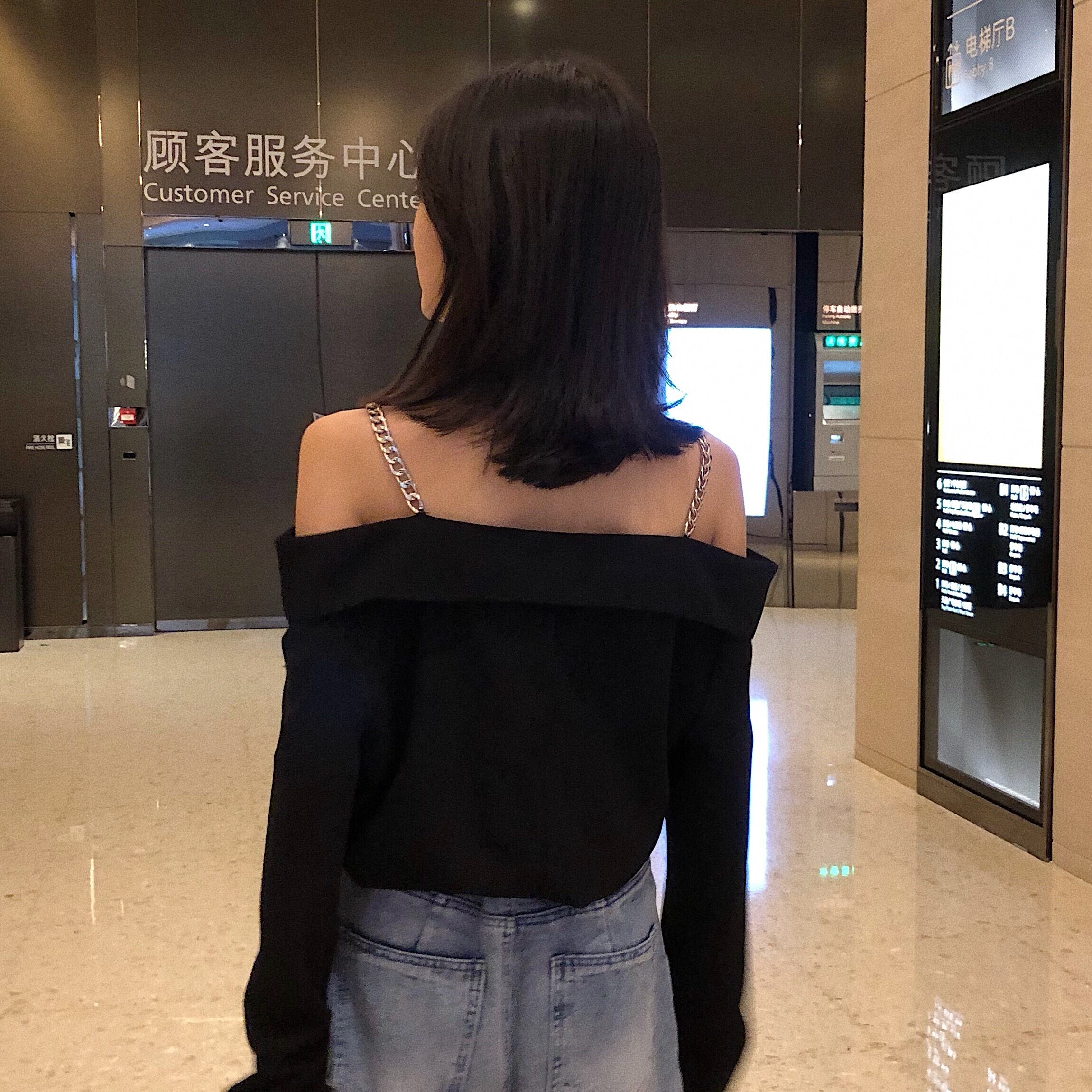 スプリングストラップレスVネックチェーン シャツ レディーススタイルトップス 春物 試着室86647690303