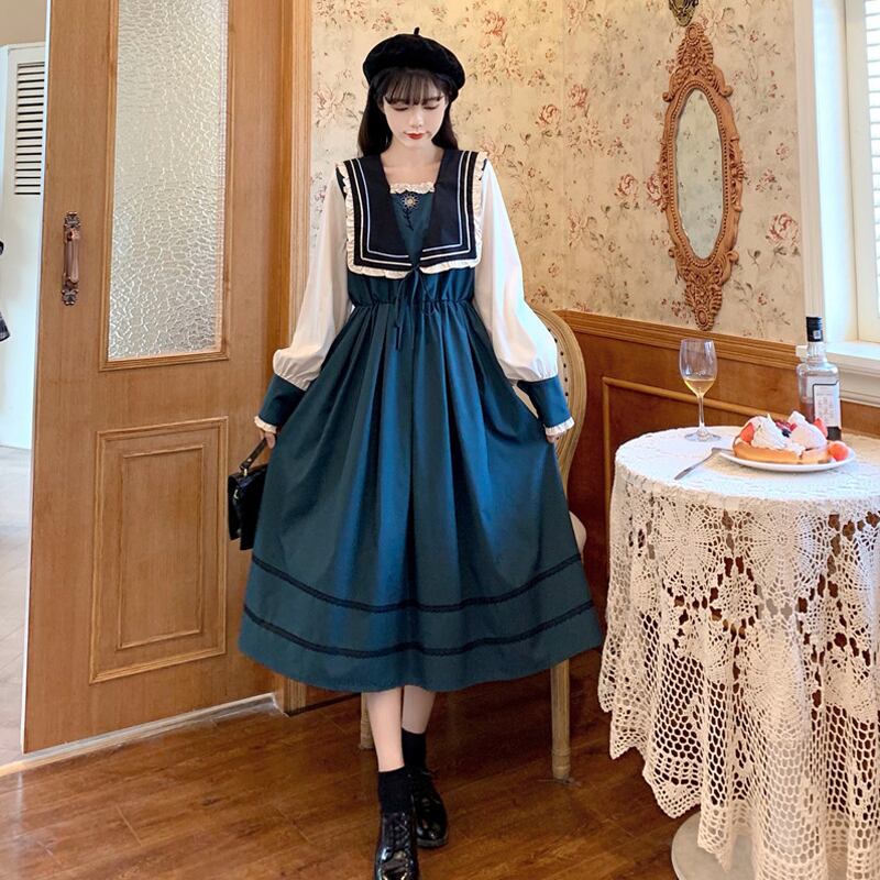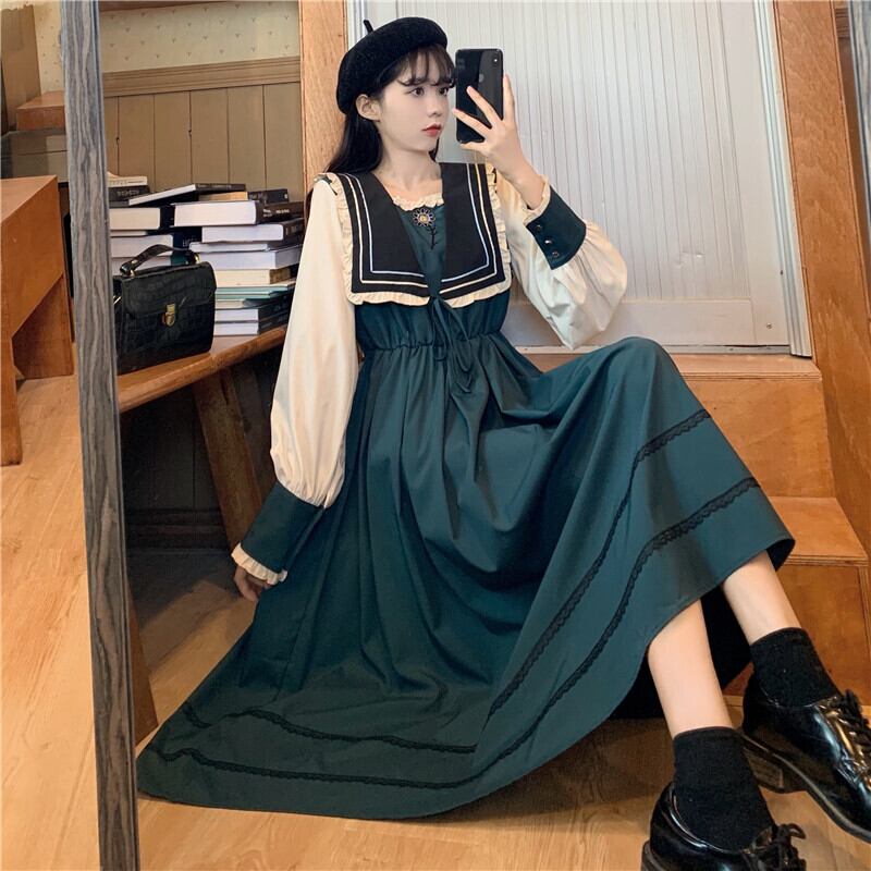 スカート スタイルカラースタンダードロングAラインウェストドレス レディース レトロ スクウェア 試着室82016738699