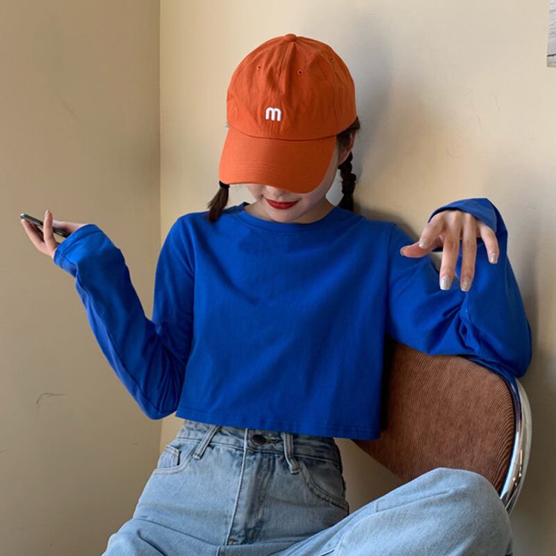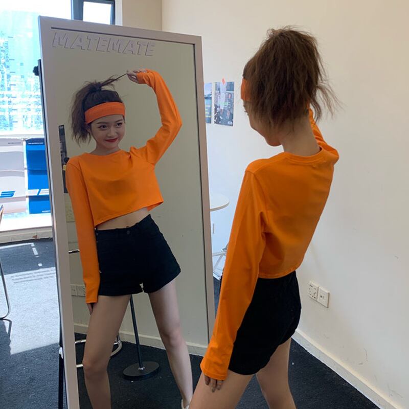 ブラウス Tシャツ シャツ スプリングラウンドネックショートスリム ロング 春物 Oネック 試着室70442098777