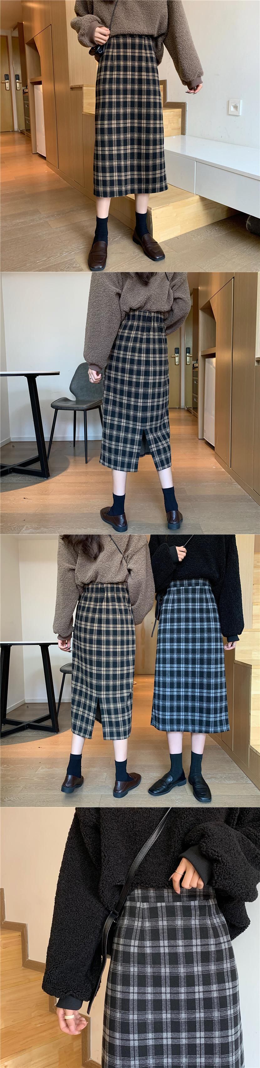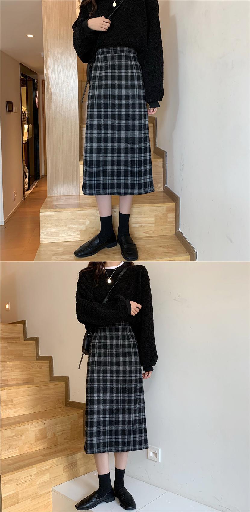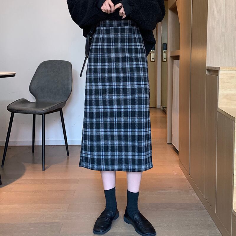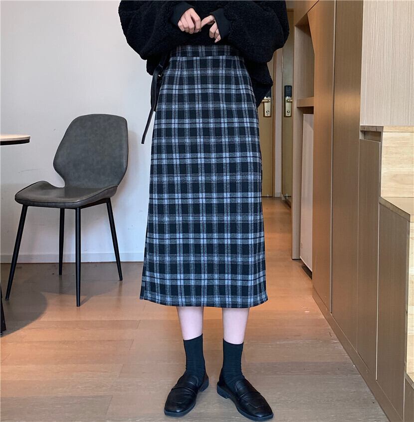 スタンダードスカート スプリングオータムスリットハイウェストウェスト レトロ 春物 秋物 試着室99596944355