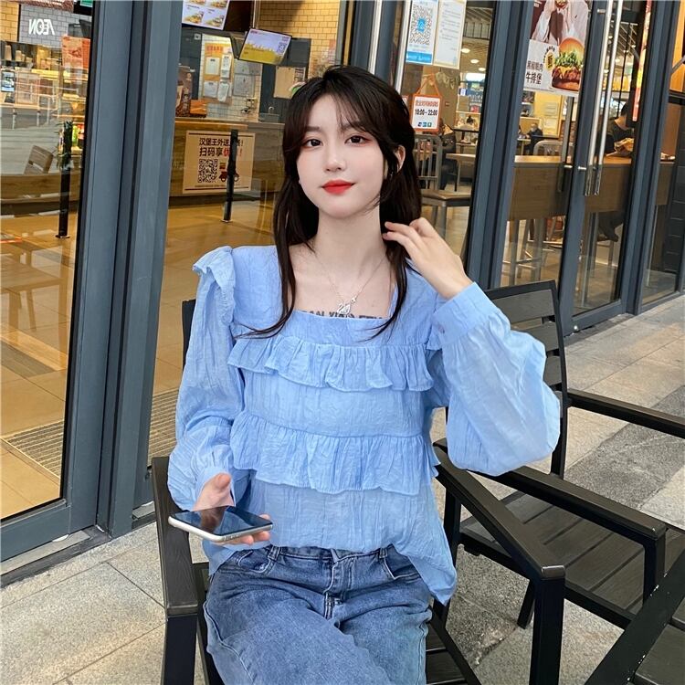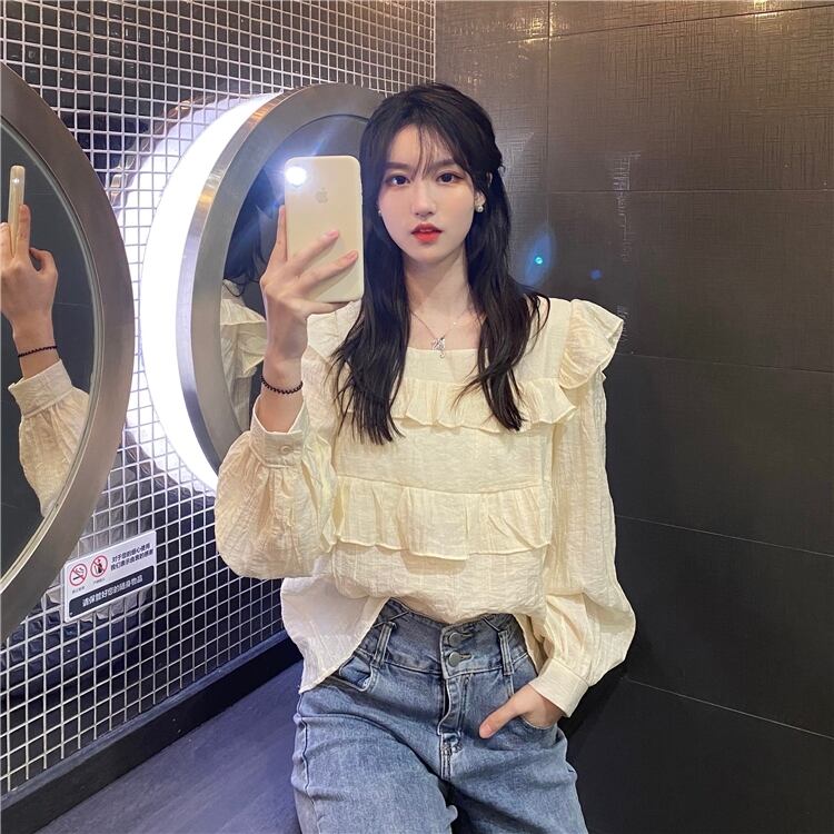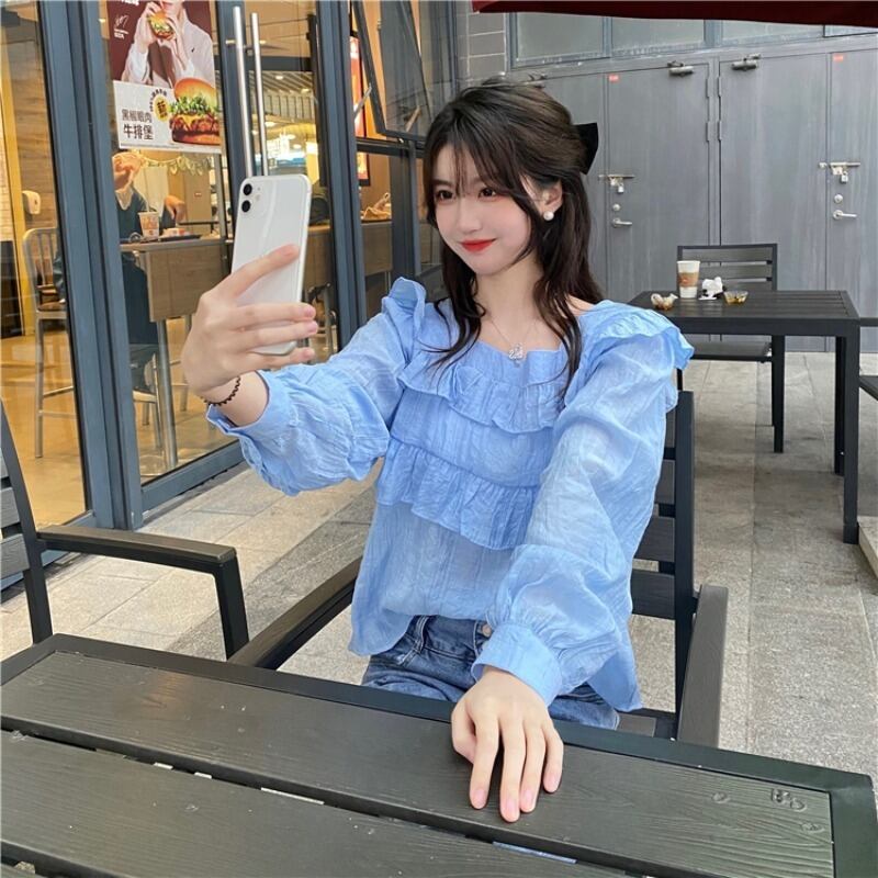 スプリングプリーツシフォンシャツ トップス ロング 春物 試着室25381278995