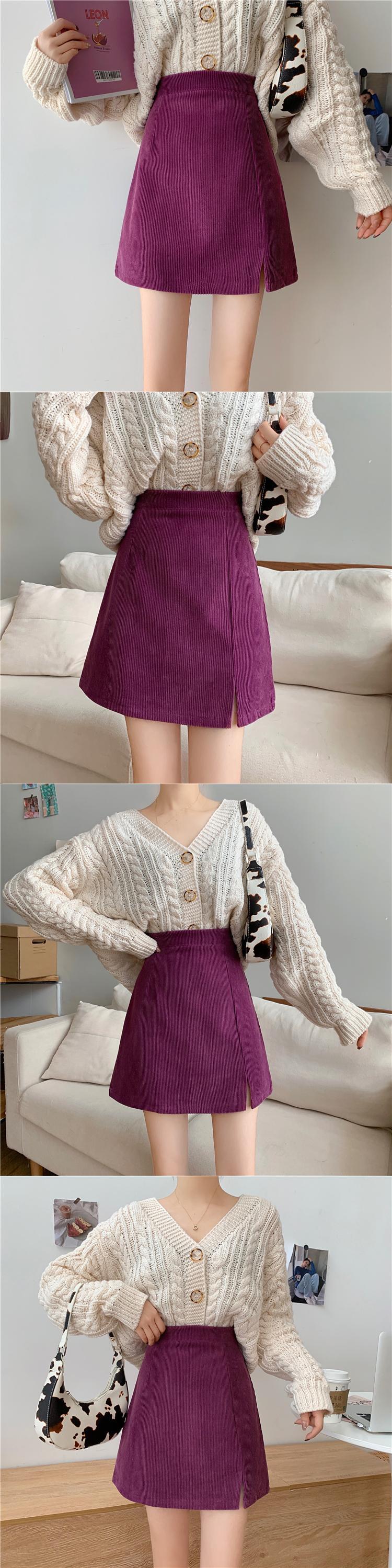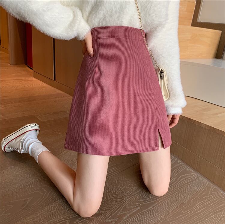 スリットハイウェストウェストAラインショートスカート サマースタンダード薄手 レトロ 夏物 試着室15492749865