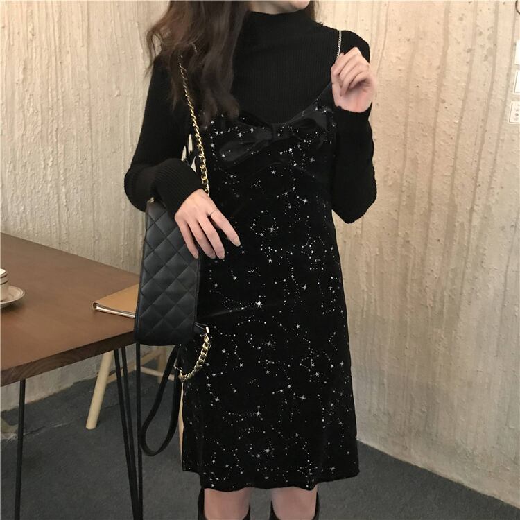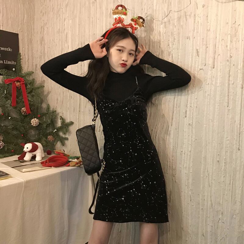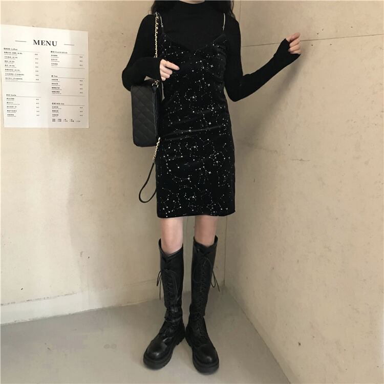 スカート スプリングスリムブラックドレス 春物 試着室63855353010