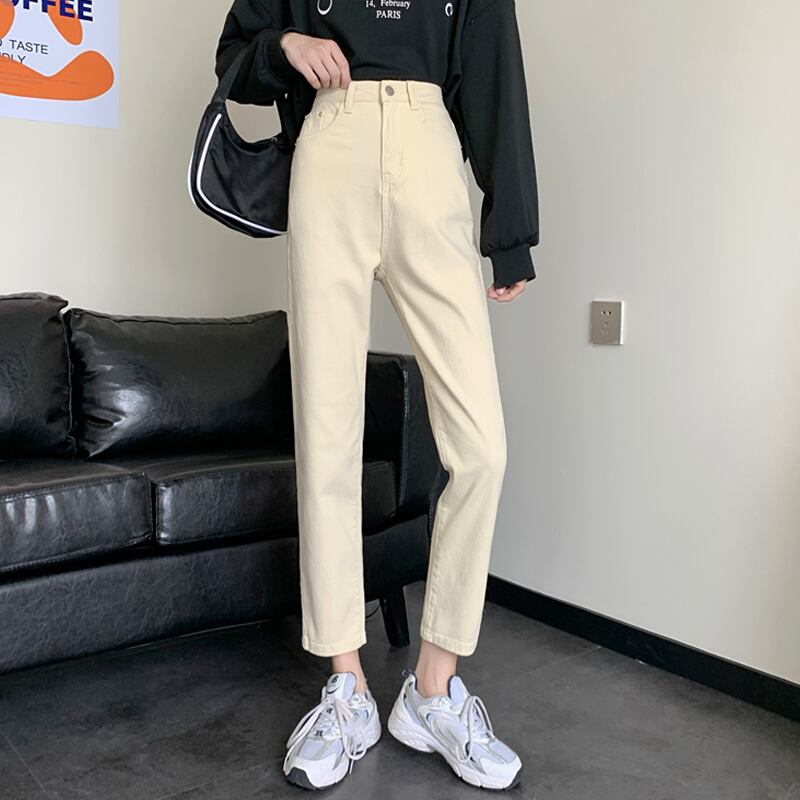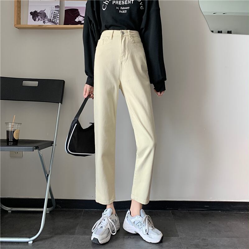 パンツ スプリングオータムレッドハイウェストウェストスリムジーンズ レディース 春物 秋物 試着室84065934868