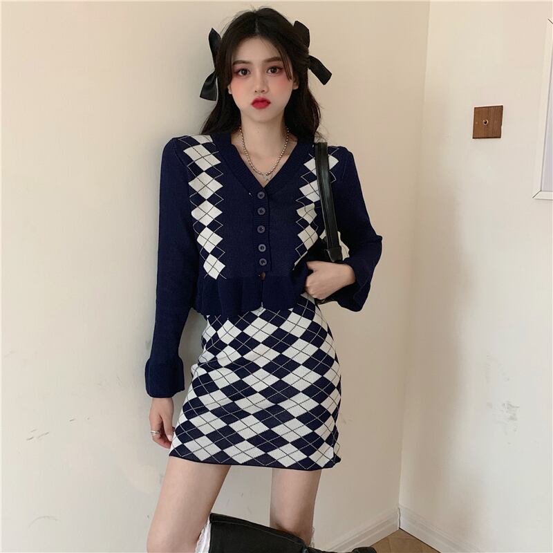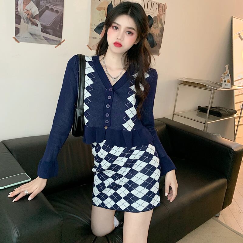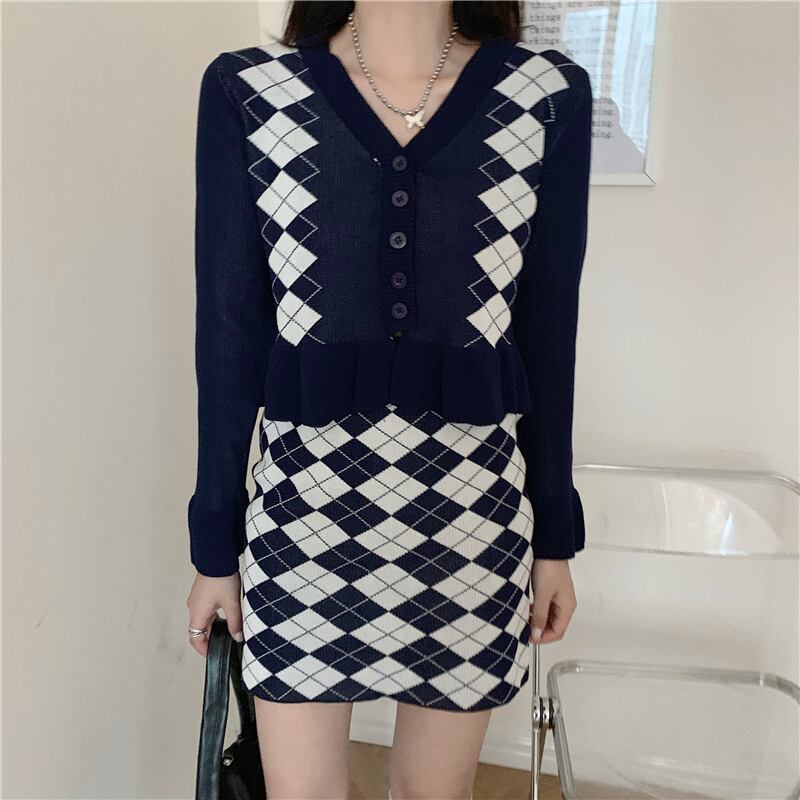 スプリングスタンダードカラーニットスカート セーター レトロ 春物 試着室942015681