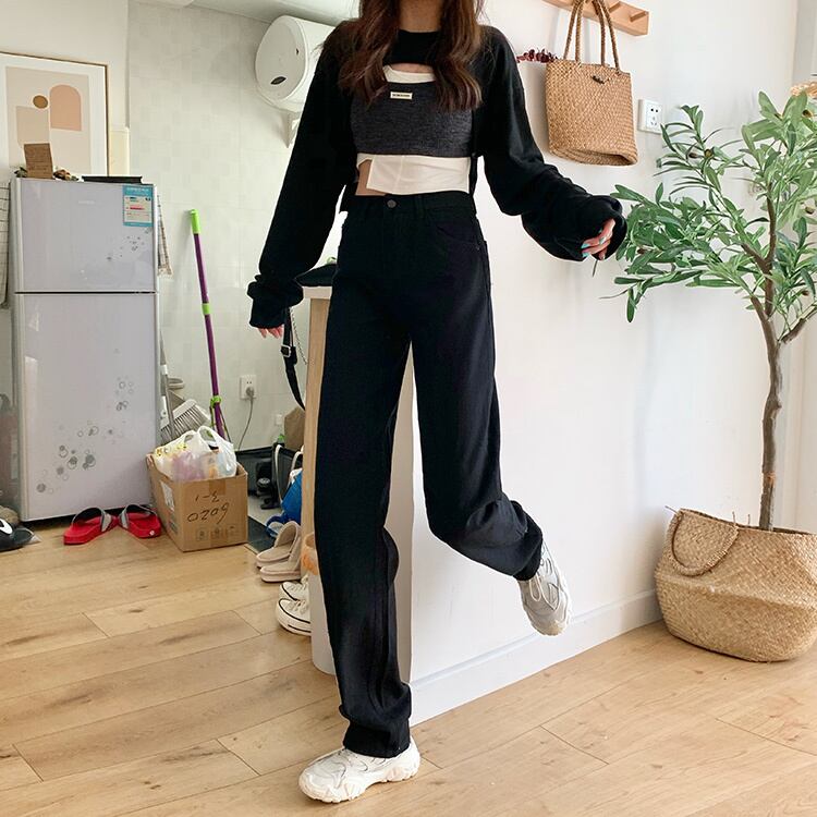 パンツ スプリングルーズハイウェストジーンズ ホワイト 春物 試着室23293574943