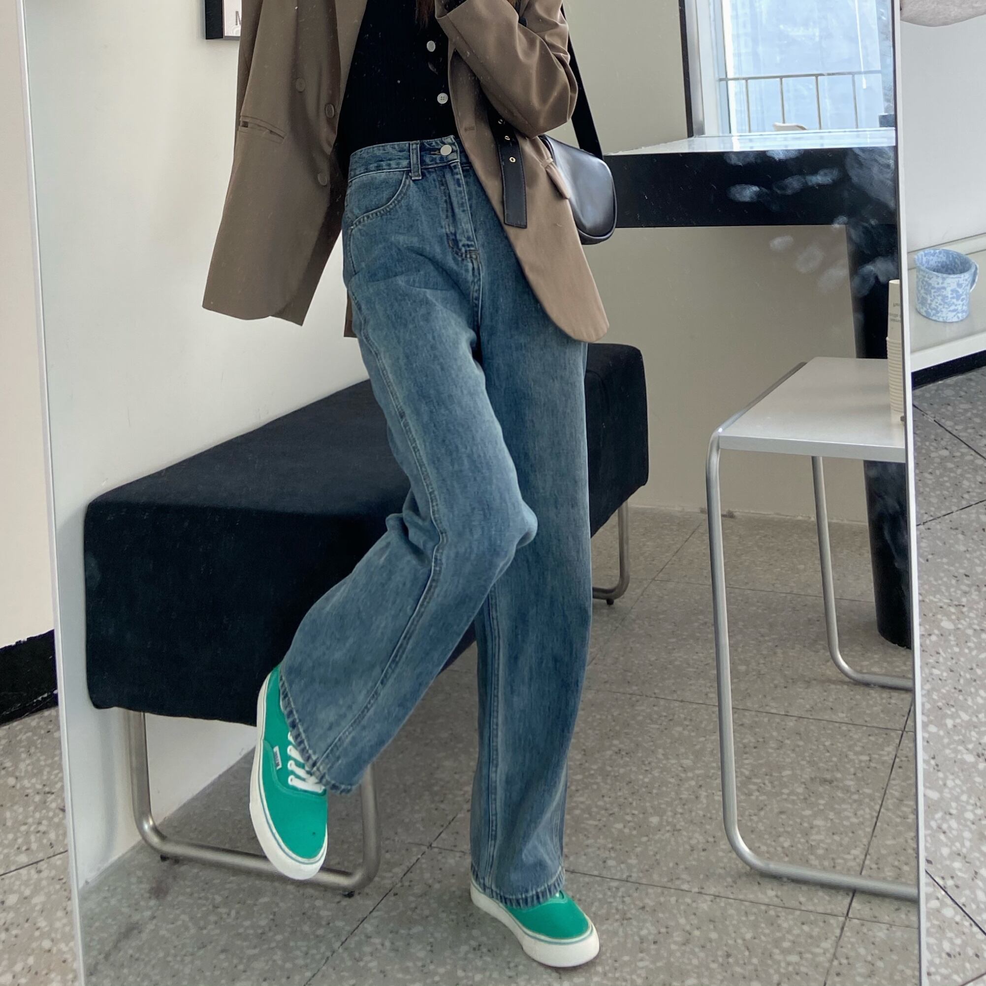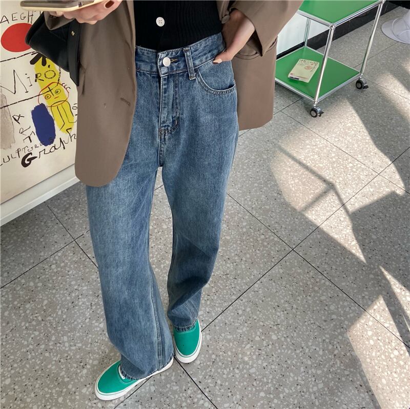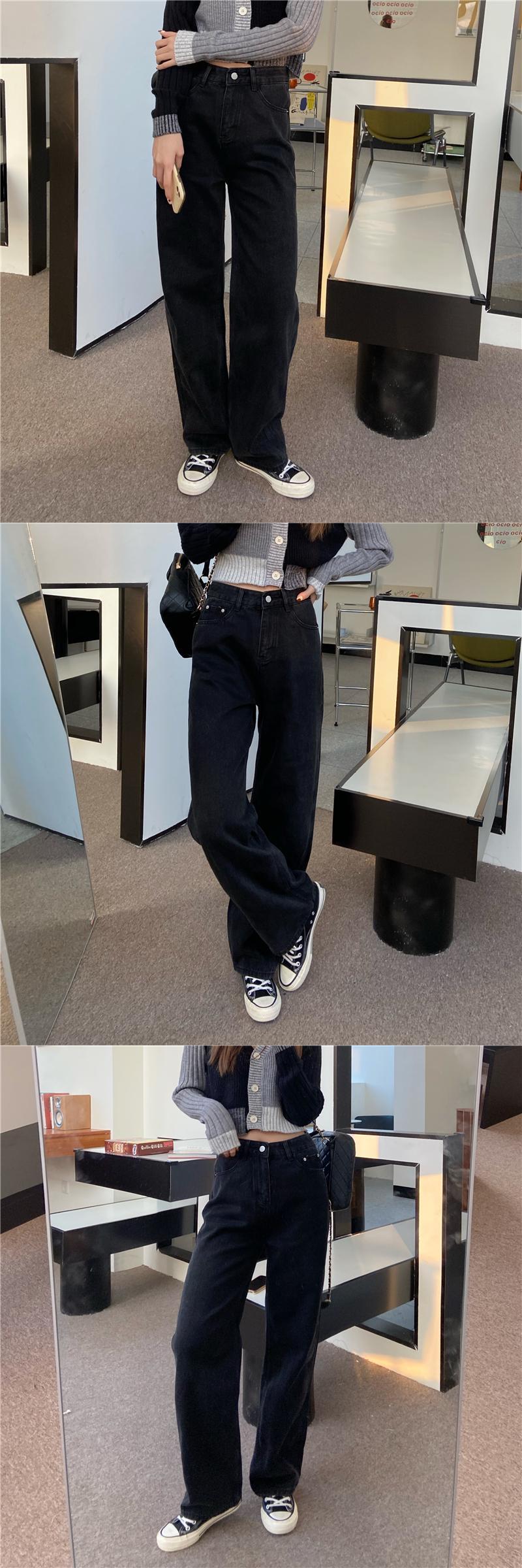 スプリングスタイルハイウェストウェストスリムパンツ ルーズカジュアルブラックジーンズ 春物 試着室23459264676