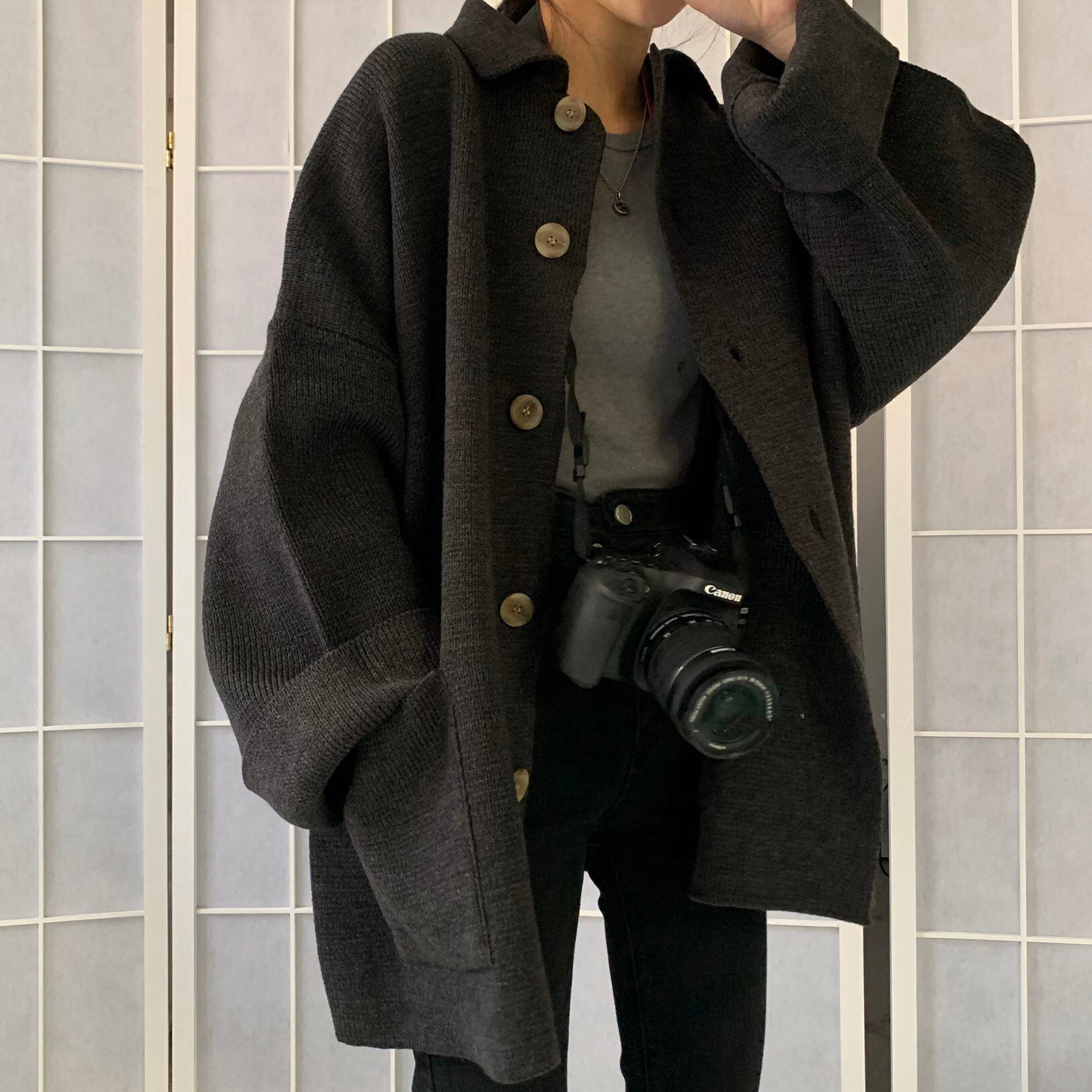 ルーズセーター ジャケット レディーススプリングオータムシャツ トップス ロング 春物 秋物 試着室6980660757