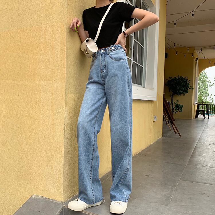 ルーズハイウェストウェストスリムパンツ スプリングワイドレッグスタイルジーンズ 春物 ワイドパンツ 試着室45385711775