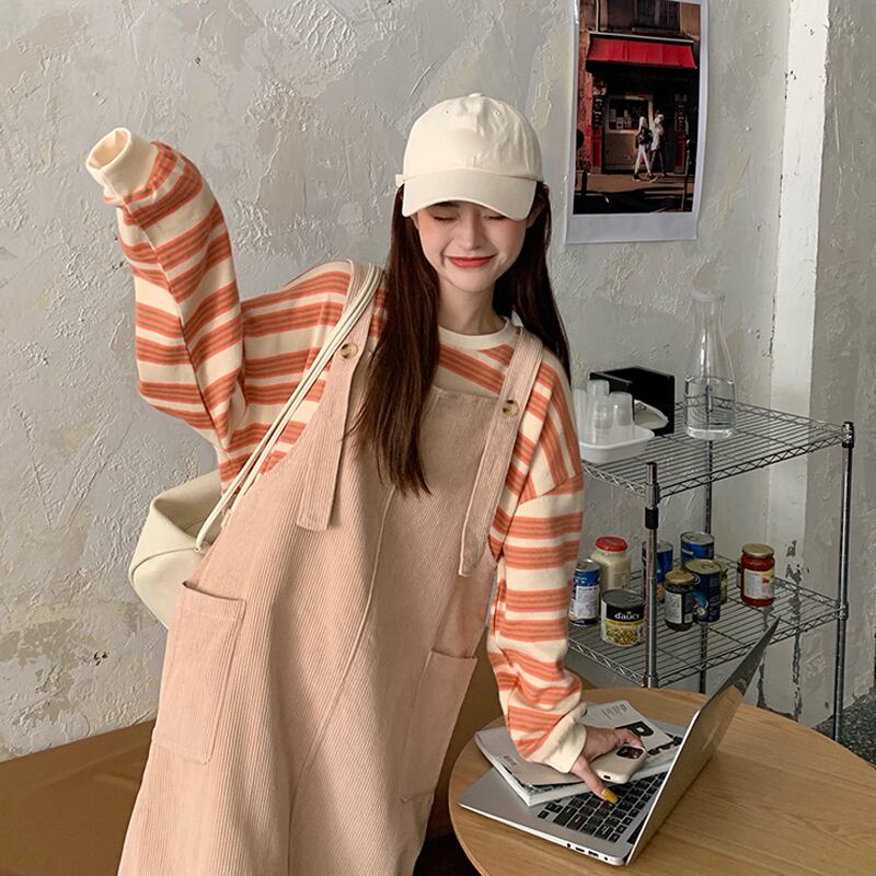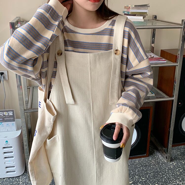 色:ブルーのストライプのセーターシングルピース,オレンジのストライプのセーターシングルピース,アプリコットスカートのワンピース,ピンクオレンジドレスシングル