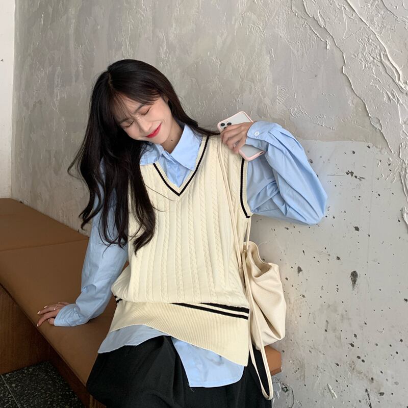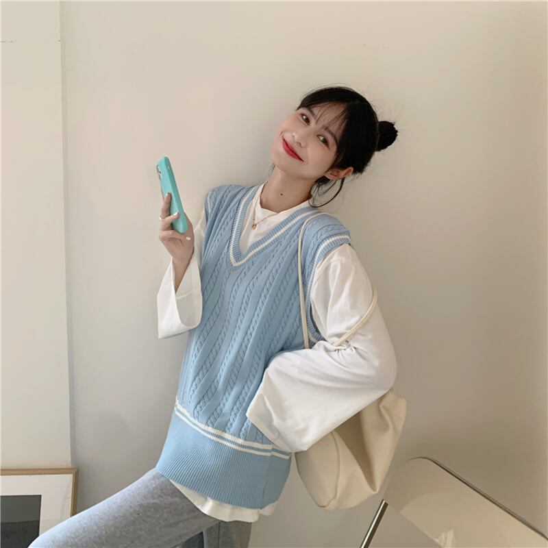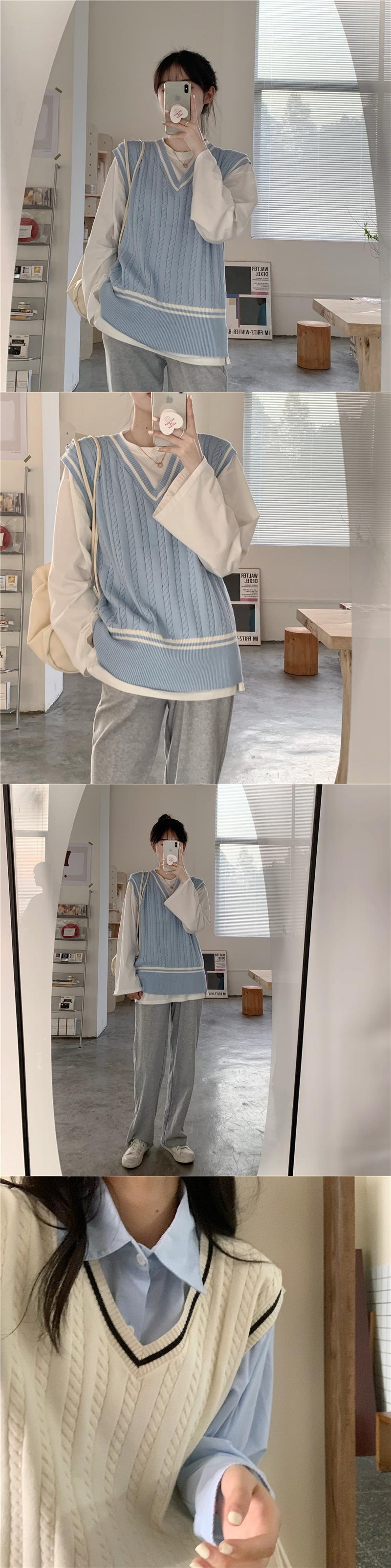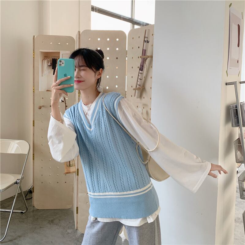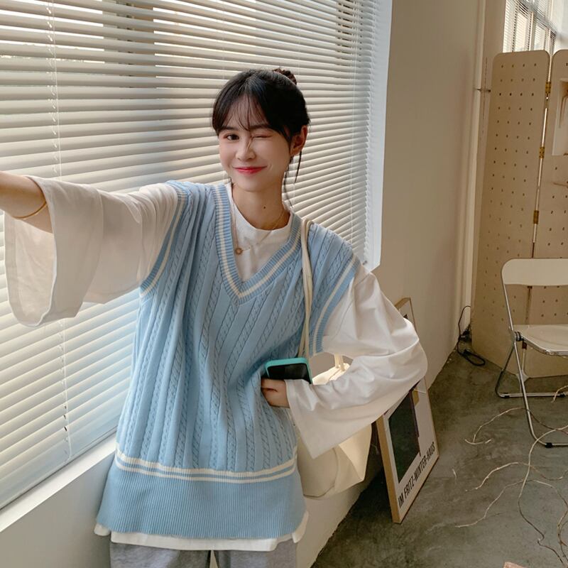 スタイルVネックニットレディーススプリングルーズノースリーブセーター 春物 試着室54747303382
