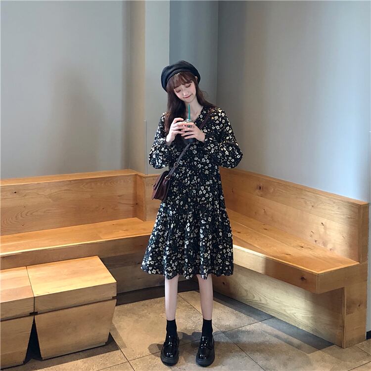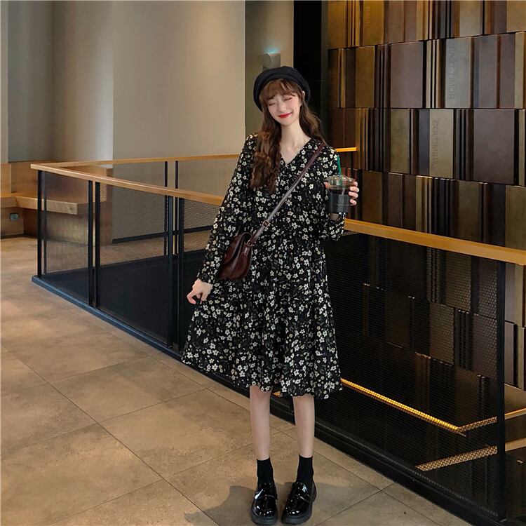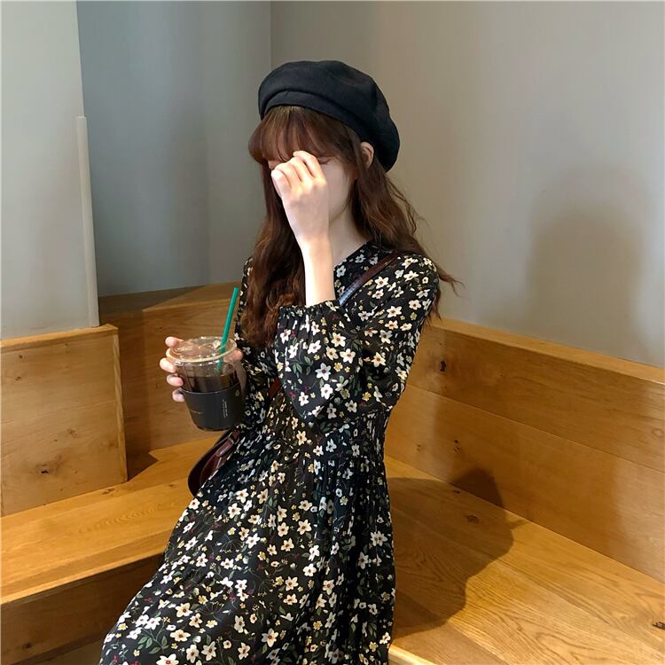 スカート スタンダードフローラルドレス 薄手Aライン レトロ オータム 秋物 ウィンター 冬物 花柄 試着室62251614385