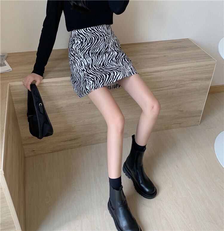 ショートスカート スプリングオータムパターンハイウェスト薄手Aライン 春物 秋物 試着室36378934735
