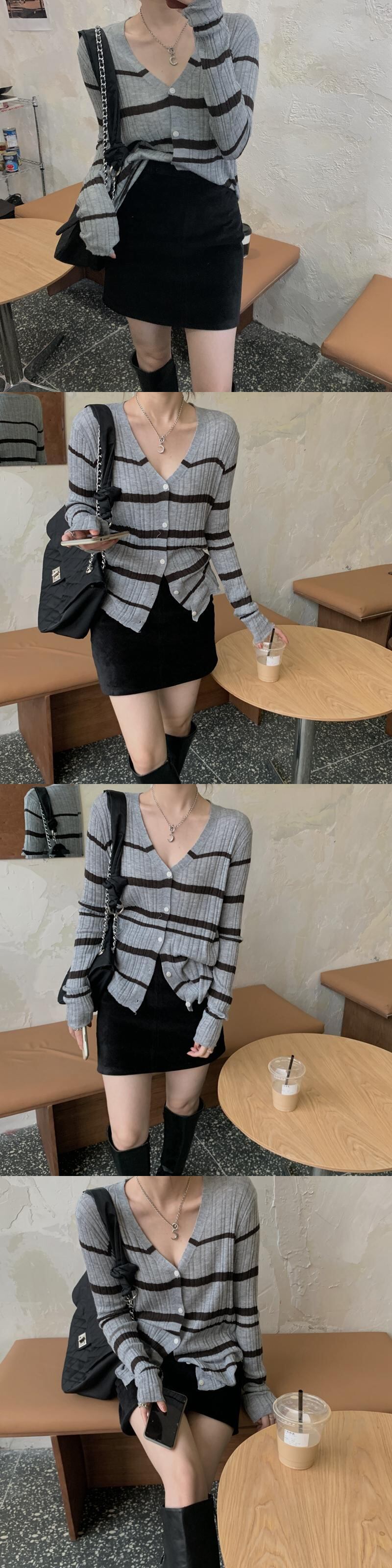 カーディガンジャケット スプリングスタイルスタンダードVネックストライプセーター レディース ロング レトロ 春物 試着室5567815698