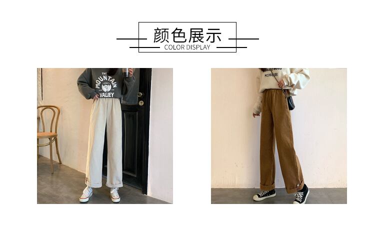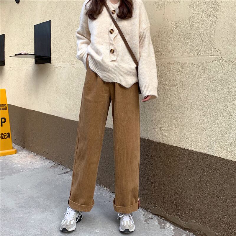 コーデュロイパンツ スプリングオータムルーズハイウェストウェストカジュアルレディース 春物 秋物 試着室95099556840