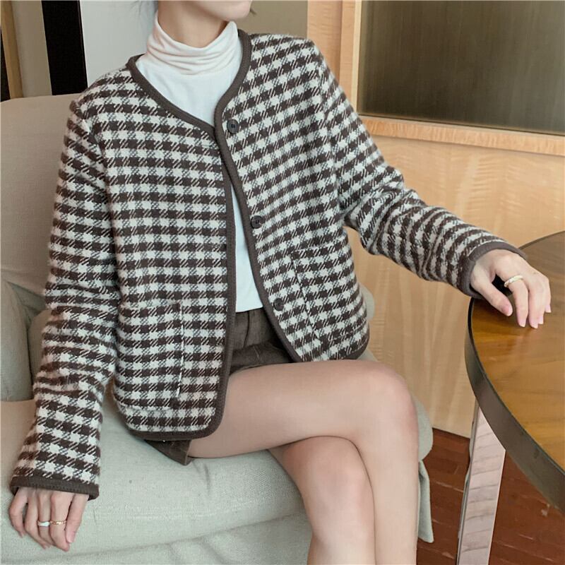 レッドルーズブラウス オータムウィンタースタンダードカジュアル格子柄ジャケット レトロ ストリート 秋物 冬物 試着室99773628778