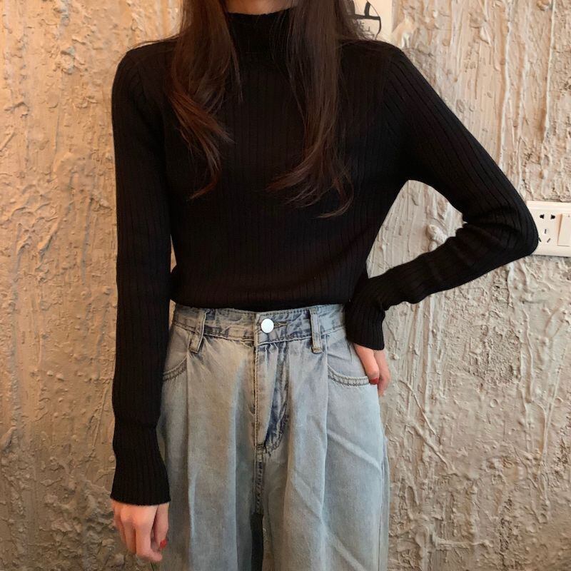 ウィンターブラックセーター ベルベットニットシャツ オータムトップス 秋物 冬物 試着室93569594388