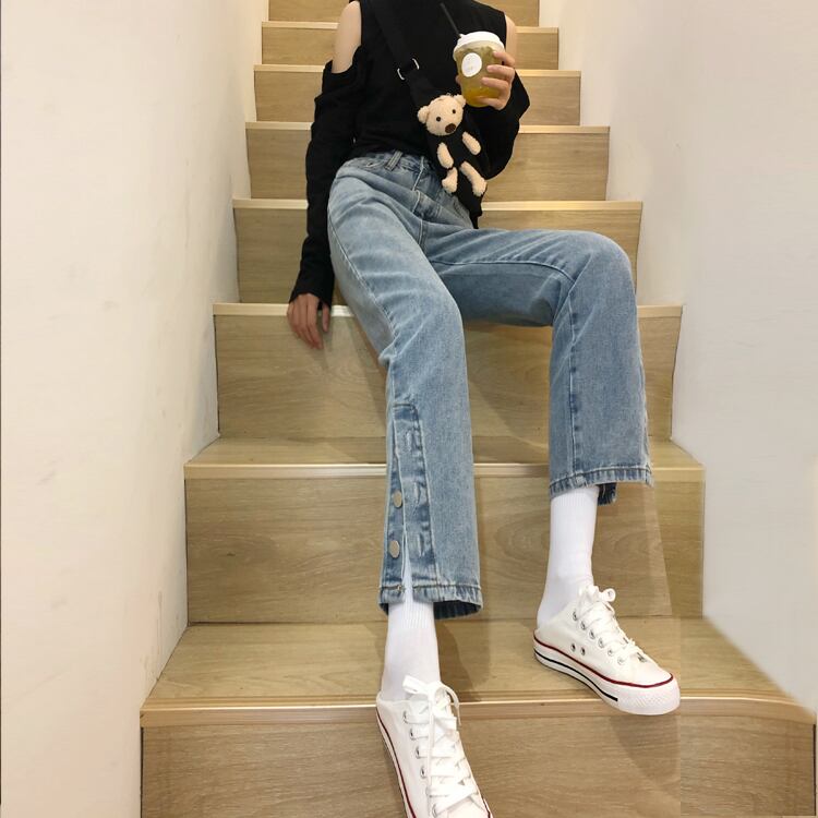 オータムウィンター薄手スタイルパンツ ハイウェストウェストジーンズ 秋物 冬物 試着室15777790355
