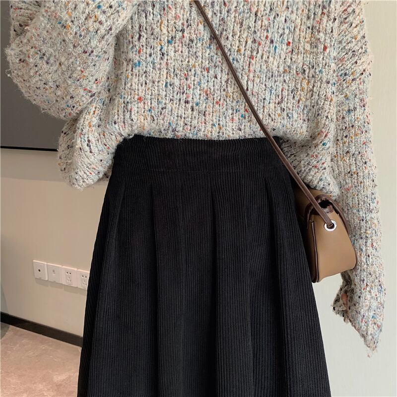 コーデュロイスカート スプリングオータムスタイルロングハイウェストウェストAライン 春物 秋物 試着室99152637530