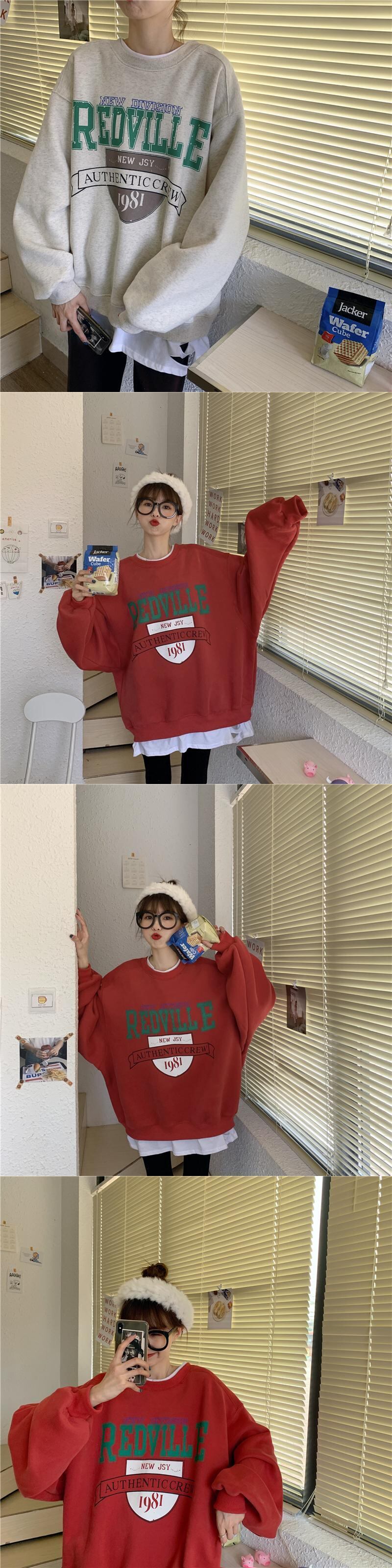 トップス レッドスタイルルーズセーター レディース ストリート オータム 秋物 ウィンター 冬物 試着室87585202044