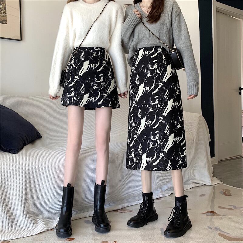 ハイウェストウェストショートスカート スプリングオータム薄手Aライン 春物 秋物 試着室7244969522