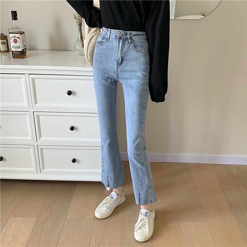 スプリングオータムスタイルパンツ ハイウェストジーンズ 薄手 レッド 春物 秋物 試着室50826977196