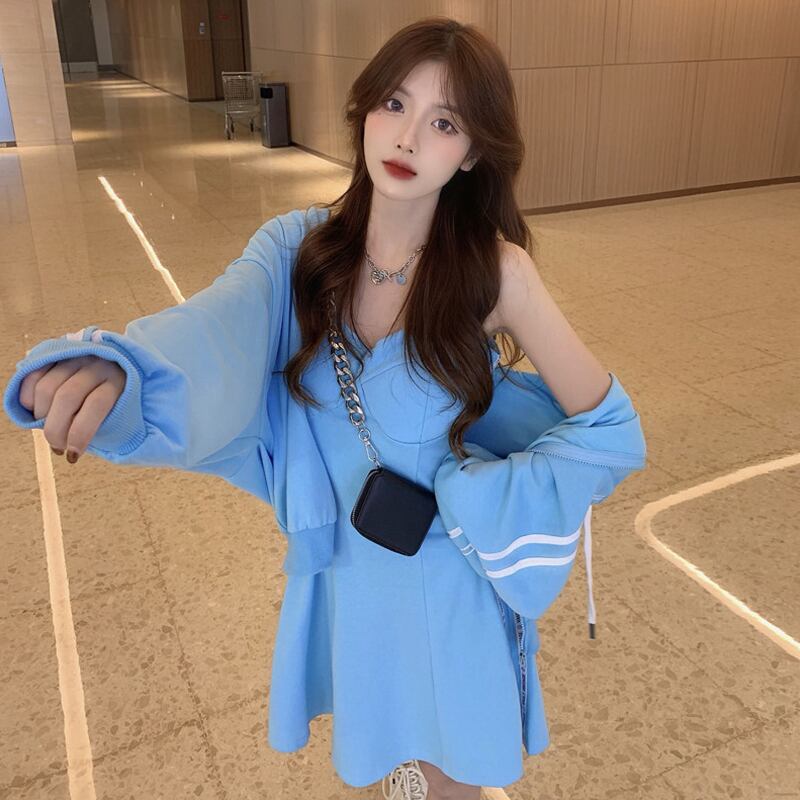 色:グレーサスペンダースカートワンピース,グレーコートシングルピース,青いサスペンダードレスワンピース,ブルーコートワンピース