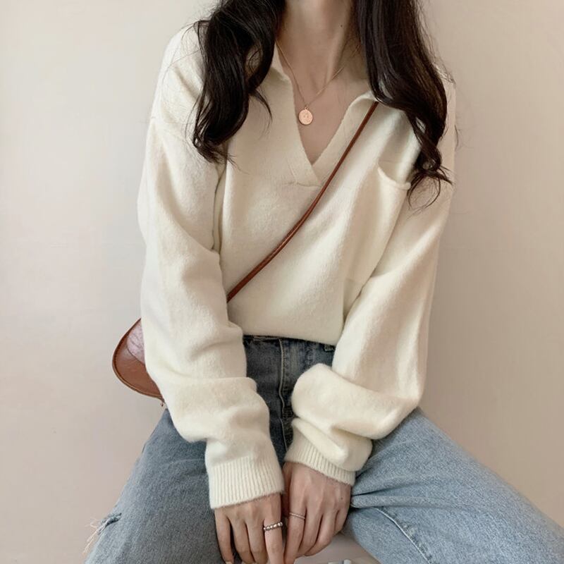 オータムウィンタールーズVネックセーター 薄手トップス ロング 秋物 冬物 試着室66444507795