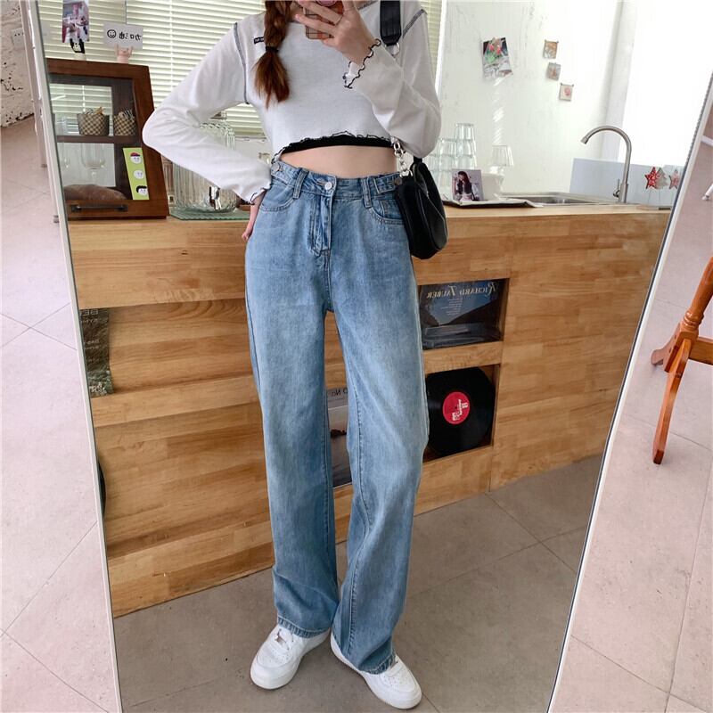 パンツ スプリングオータムルーズハイウェストジーンズ 薄手 レッド 春物 秋物 試着室7931855217