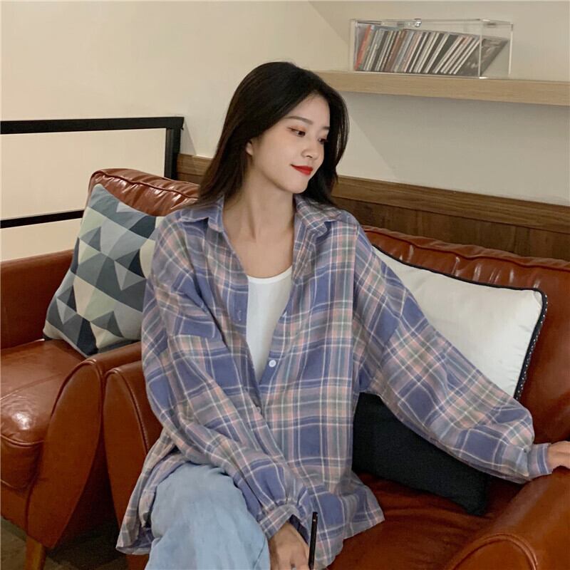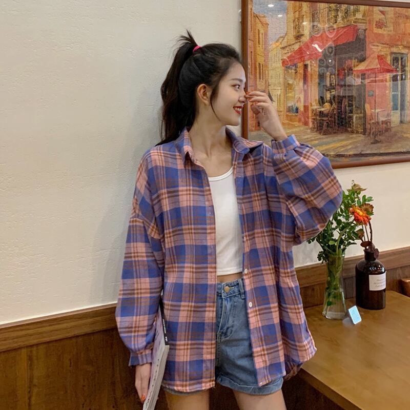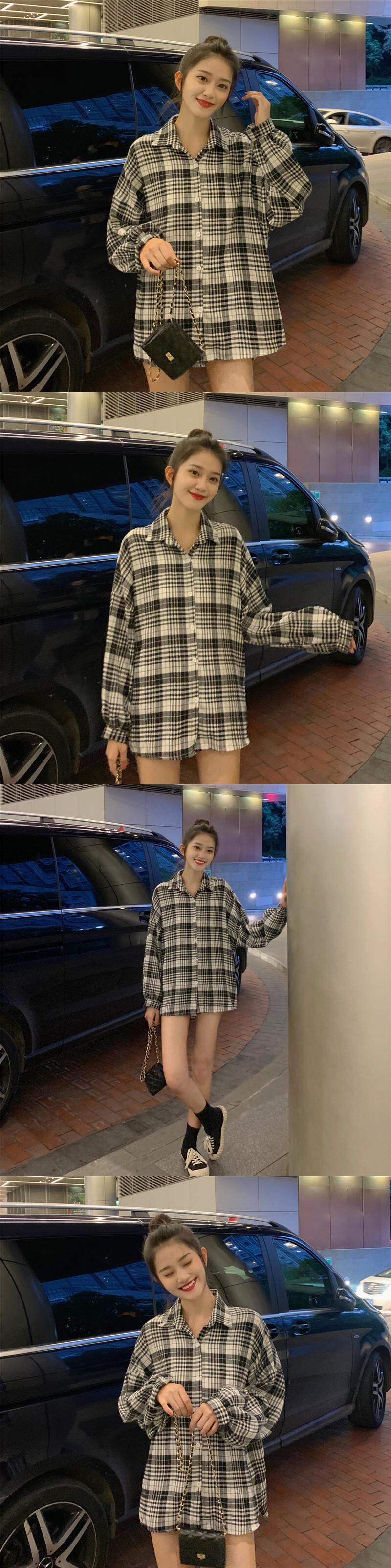 スタンダードスタイル格子柄シャツ サマールーズ ロング レトロ 夏物 試着室83510933961