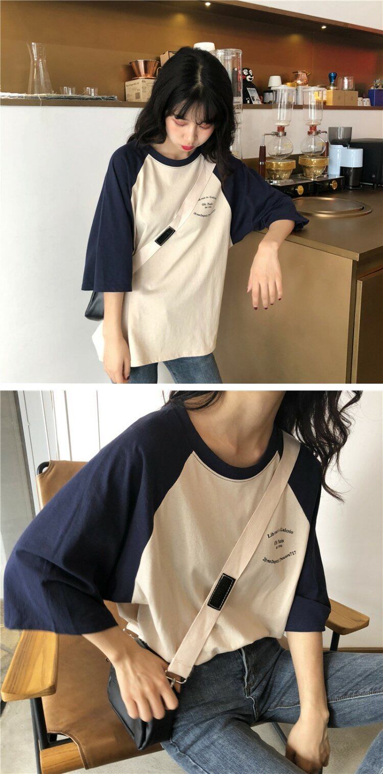 スリーブTシャツ レディースサマーレッドルーズトップス 夏物 ステッチ 試着室97235763422