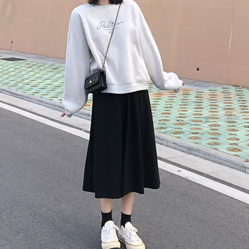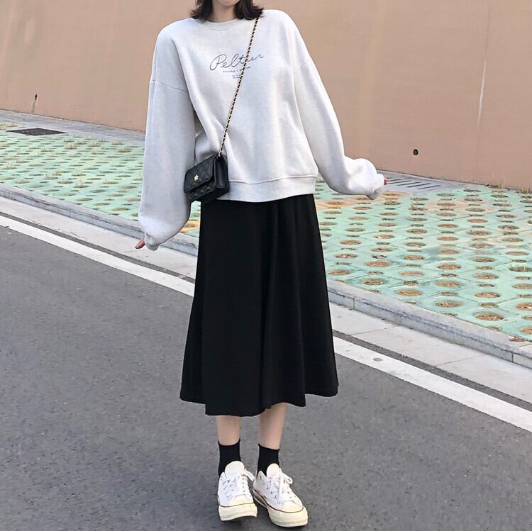 ブラックスカート スプリングハイウェストウェストスリムAライン 春物 試着室36081796295