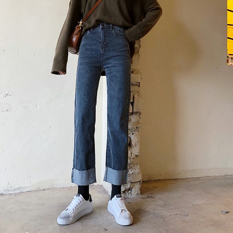 ルーズハイウェストウェストスリムパンツ スプリングオータムスタイルジーンズ 春物 秋物 試着室33349414702