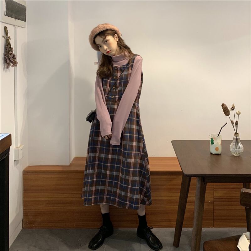 色:ワンピースシャツ,チェック柄ベストスカートワンピース,ウールコートのワンピース