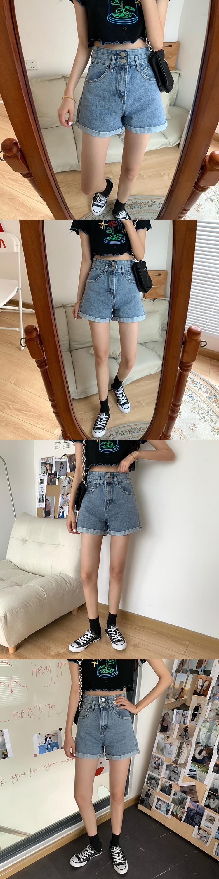 サマールーズパンツ レッドジーンズ ハイウェストウェストショーツ 薄手 夏物 ブルマー 試着室86685830466