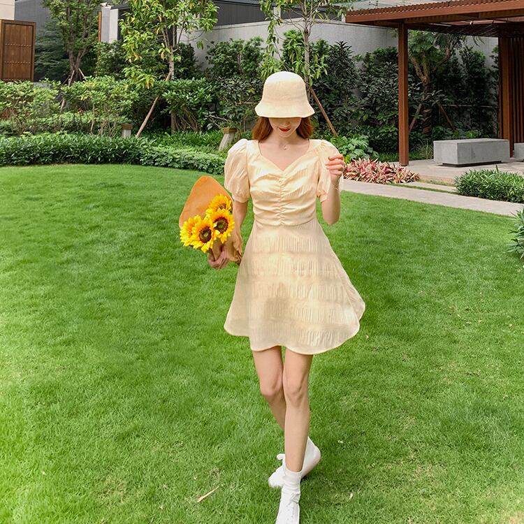 スタンダードVネックシフォンスカート サマースタイル薄手ドレス レディース レトロ 夏物 試着室58721093951