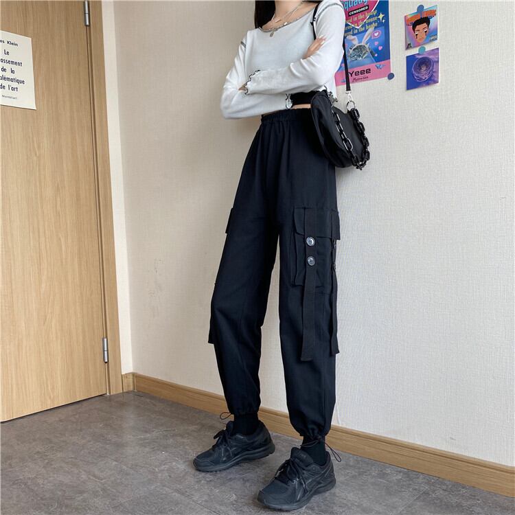 ブラックパンツ ルーズカジュアルオーバーオール 薄手ハイウェストウェストオータムウィンター 秋物 冬物 試着室95835058511
