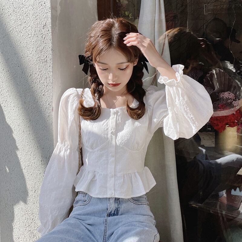 ホワイトシャツ スプリング薄手カラートップス ロング 春物 スクウェア 試着室69742572023