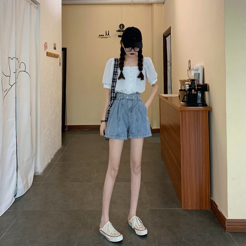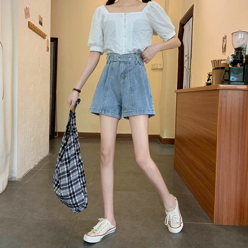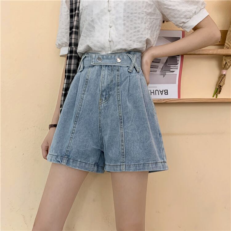 サマールーズ薄手パンツ レッドAラインハイウェストウェストジーンズ ショーツ 夏物 ブルマー 試着室69049489317