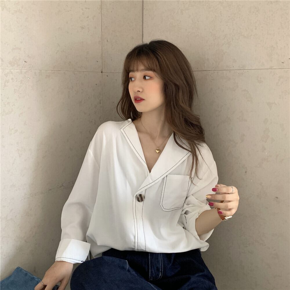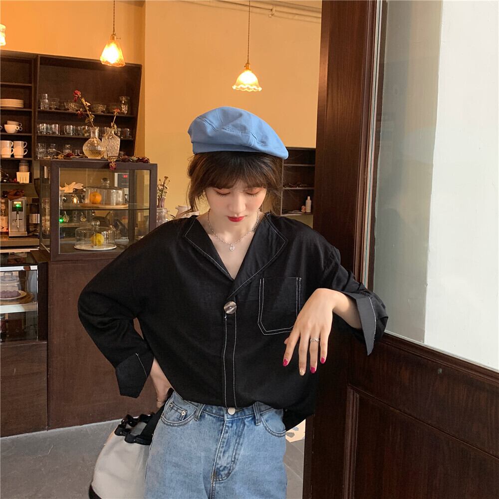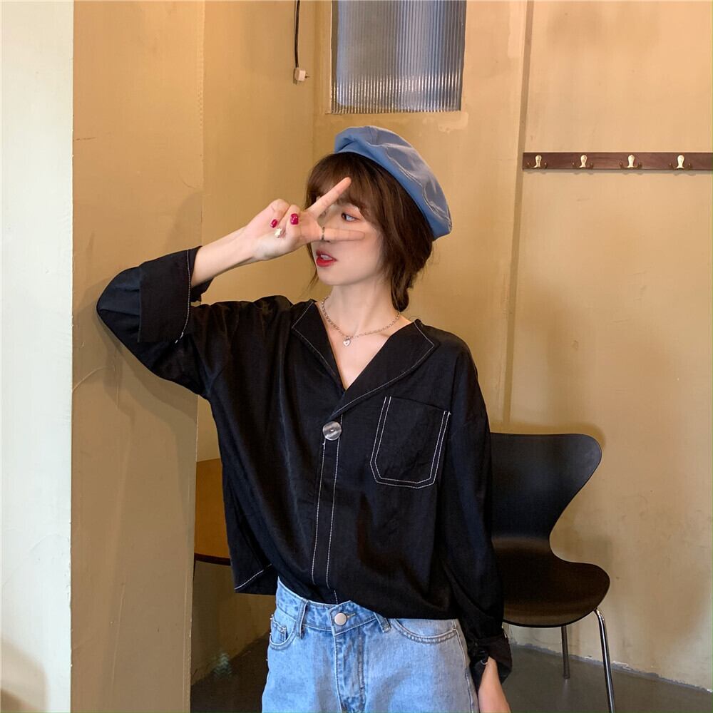 シャツ オータムウィンタースタイル薄手ルーズブラックレディース ロング 秋物 冬物 試着室93166034504